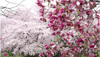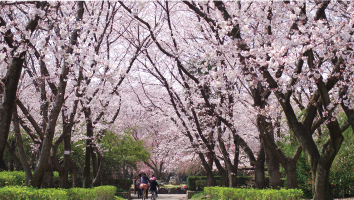 花木園全体に約400本のソメイヨシノと中央には9本のシダレザクラ、梅園などがあります。開花時にはたくさんの花見客でにぎわうスポットです。 他にもマグノリアやハナミズキなどが鑑賞できます。 庄内緑地全体では、ソメイヨシノを含め約1,000本の桜があります。花木園以外もお楽しみください。